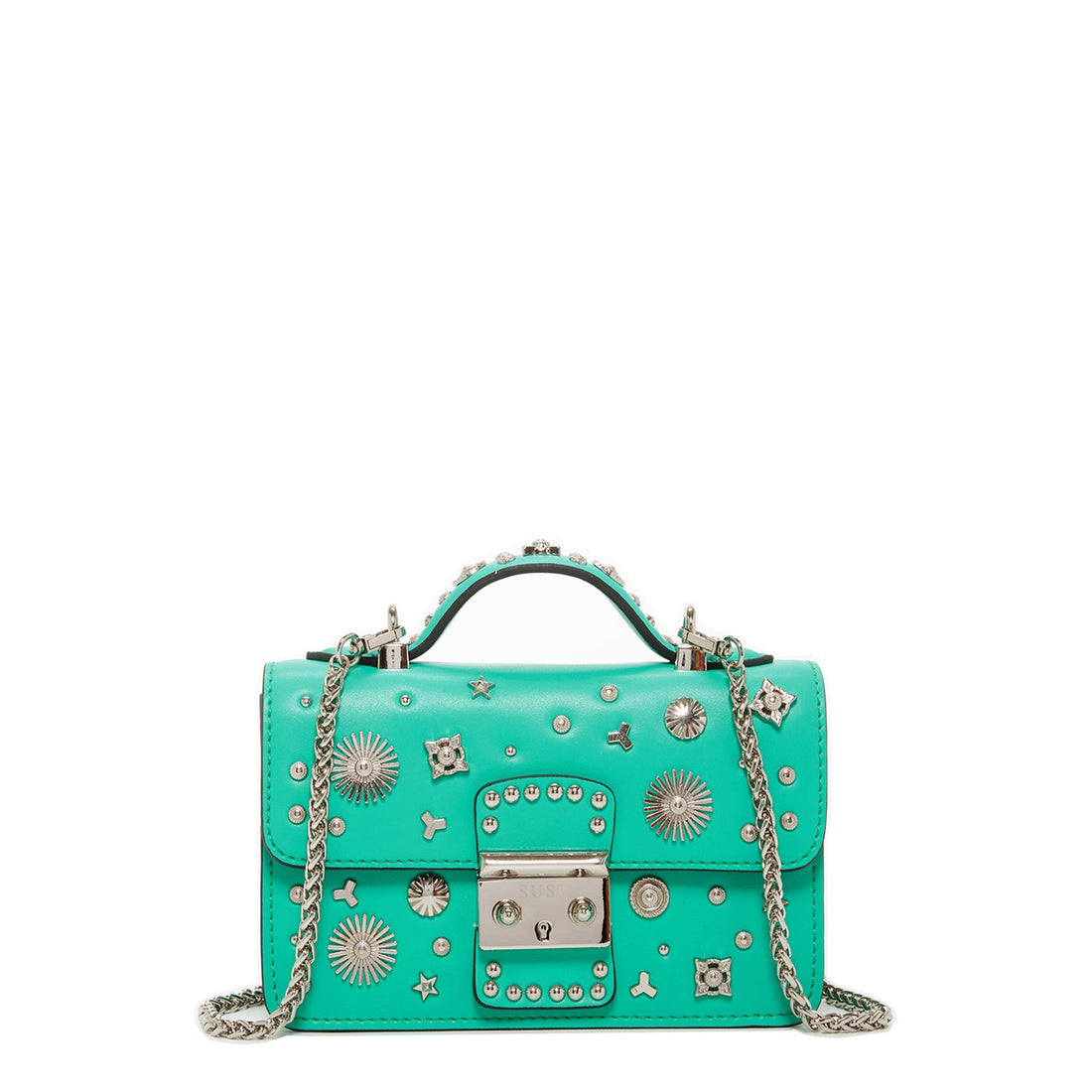 Small Leather Crossbody Bag Studded Silver Purse