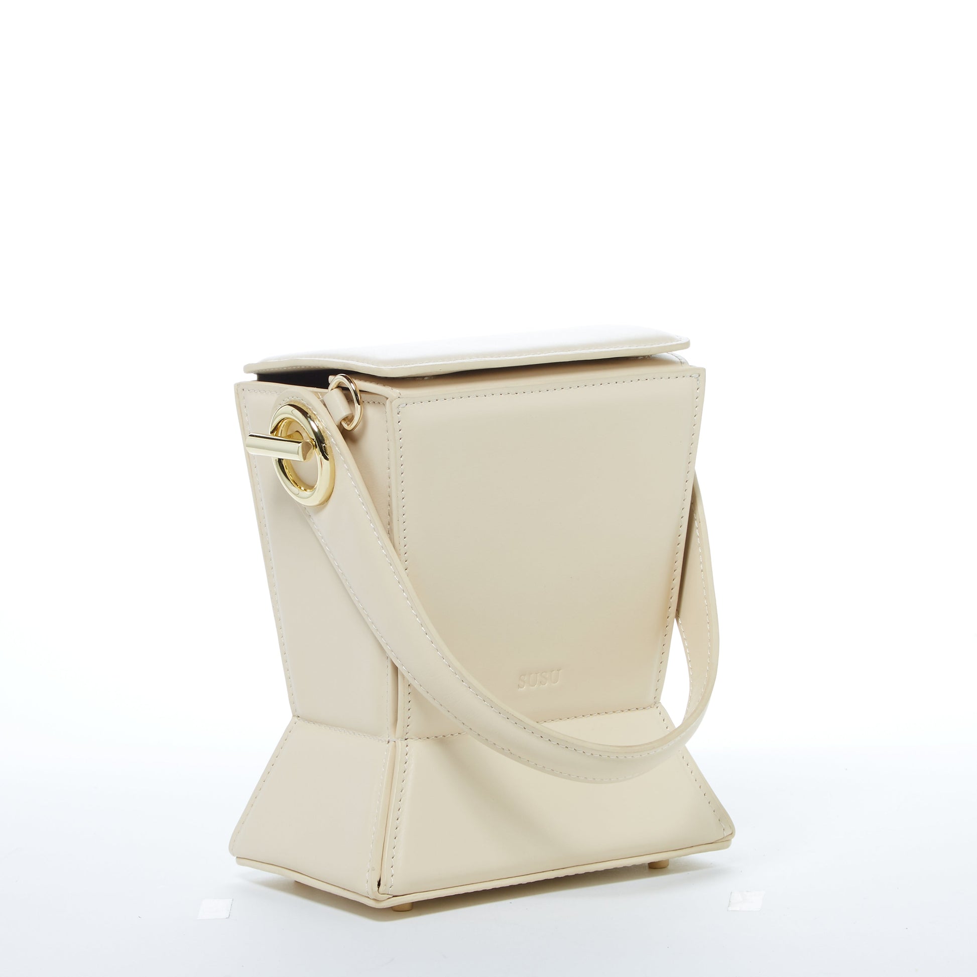 Make heads turn with The Amber, a truly one of a kind off white leather crossbody bag. It’s a must have for anyone that likes to stand out with unique purses. It has a modern geometric design that is complemented with smooth creme-hued leather, light gold hardware, and a coffee cotton lining. The Tower leather bucket bag is more than just eye candy - it has a functional design with a strong double magnetic closure for easy access and folds out into a roomy accordion shape which you'll find a surprisingly spacious interior. It also comes with an adjustable and removable cross over strap, so you can wear it as a cross body purse or carry it by the top handle as a bucket barrel bag . However you decide to style it, this unique vase shape vanilla custard bucket handbag will definitely take your outfit to the next level.