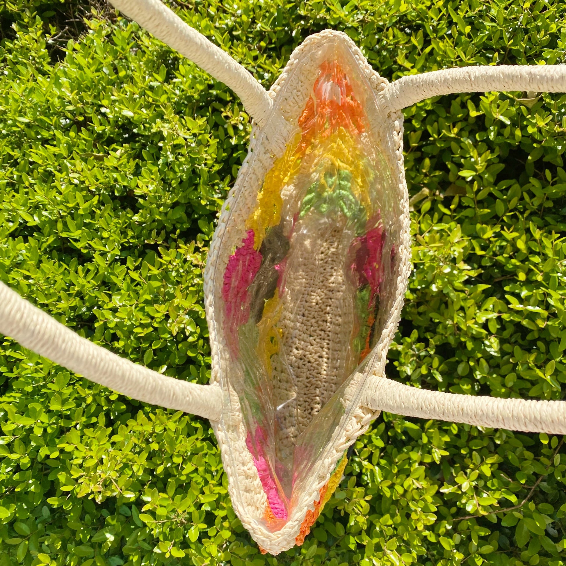 Absolutely gorgeous and one of a kind bag. The colorful flower detailing makes it so fun and chic! Full hand work dedicated to create this beautiful colors and knitting details!